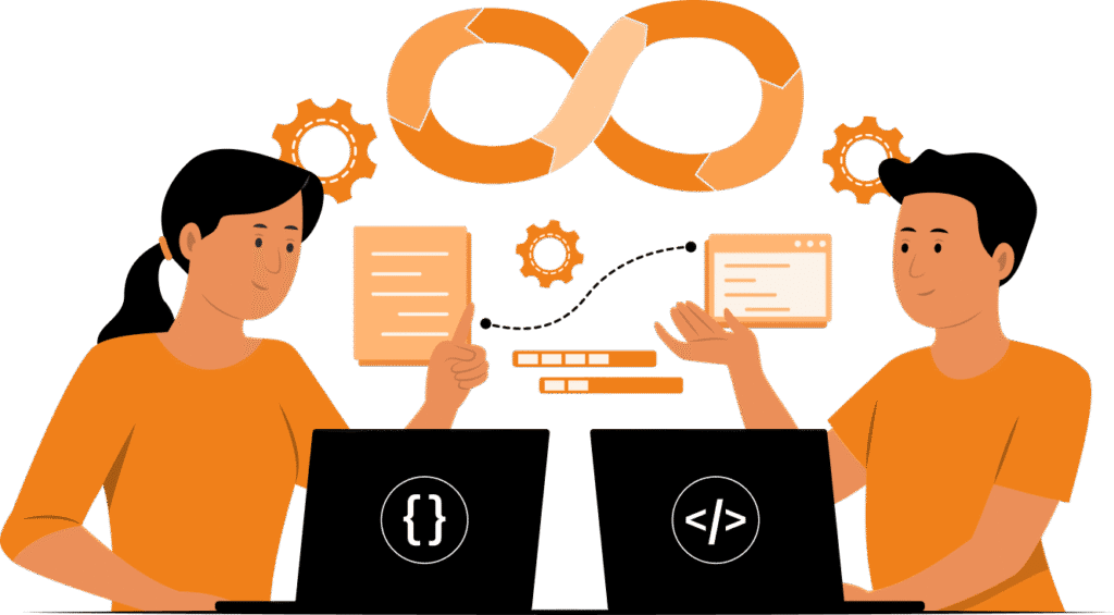 Iterative building of front-end and back-end components uses Agile methodologies. Seamless API integrations connect existing systems, creating a cohesive, functional enterprise solution.