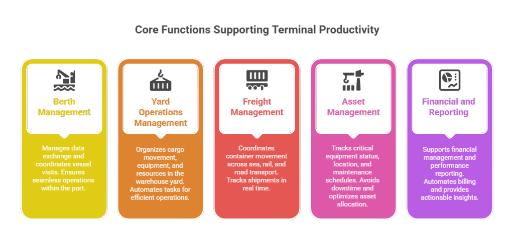 Key functions that directly contribute to improved port productivity include: